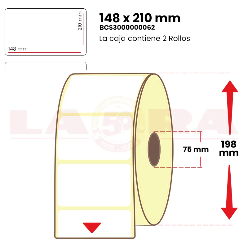 Rollo de 900 etiquetas Polipropileno Blanco 148 x 210 mm ACRÍLICO
